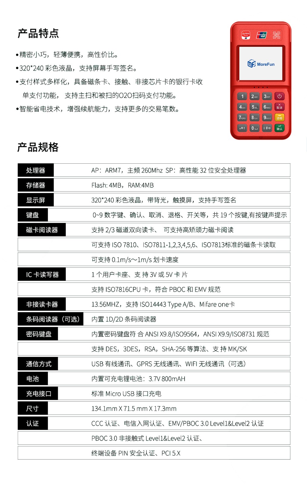 首页>>静海产品中心>>静海手持无线POS 静海电银支付-4G+扫码枪 高配版 * 性能优越:32位高性能ARM11安全CPU;整机通过业内更先进的PCI PED4.X 安全认证及国内受理终端PIN输入设备安全评估检测认证,多项措施保障金融交易的安全;* 时尚外观:外形小巧携带方便,高抗跌落性能、宽工作温度、防水防尘设计、外壳坚固耐刮、户外携带式作业更加耐久可靠。* 通讯备份:支持2G-3G扩展;* 超长续航:3.7V-800毫安稳定续航能力,智能电池管理保证持续工作18小时,待机72小时。 标准配置 返 回